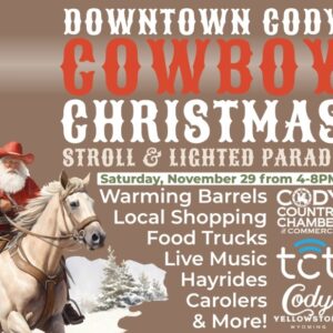 Saturday is the Cody Cupboard Food Drive – and this year with the government shutdown, it’s especially important to make sure their shelves are full. Also, the always popular Presbyterian Women’s 25th Annual Fall Festival happens as well as the Christmas Open House at the Thistle.