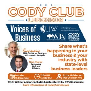As the holiday season ramps up, I love that we begin with gratitude. Giving thanks. And there is much to give thanks for in this vibrant community surrounded by such beauty. I sincerely appreciate the opportunities Cody Journal gives me to connect with so many in town...
