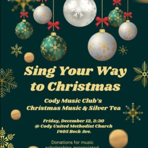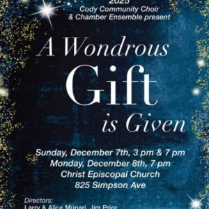 Cody Center for the Performing Arts will be “Taking Care of Christmas” once again for their annual fundraiser benefitting Cody Holiday Helpers. The matinee performance will take place on Saturday, December 6 at 2 pm at the Wynona Thompson Auditorium. Tickets are $10...