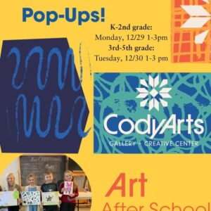 And, if you need items to be wrapped, stop by CodyArts on Wednesday from 5:00 – 7:00 pm. They’re turning shopping into a true party with their Wrap It Up After Hours Party! Stop in to purchase unique, hand-made art gifts, enjoy some drinks and live music while visiting with friends and neighbors.