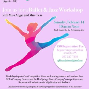 Friday morning starts off with another Wyoming Walks for Seniors at the Buffalo Bill Center of the West where you can also see the initial displays of Buffalo Nation: America at 250. Stop by CodyArts for their Open Studio Open House and learn all they have to offer to increase your creative output. In the evening, the Cody House of Prayer is holding their annual Daddy Daughter Dance.