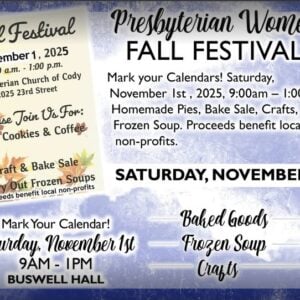 In addition there are some bigger parties happening. Tickets are still available for the CodyArts Fundraiser The Haunt…A Wicked Good Party, the Oktoberfest 2025 Wine & Beer Tasting happens at the VFW, the Powell Medical Foundation has their Murder at Misty Oaks fundraiser and the Chamberlin Inn is holding another Western Whiskey Night. Round out your evening with the big Halloween Party (with prizes) at the Irma.