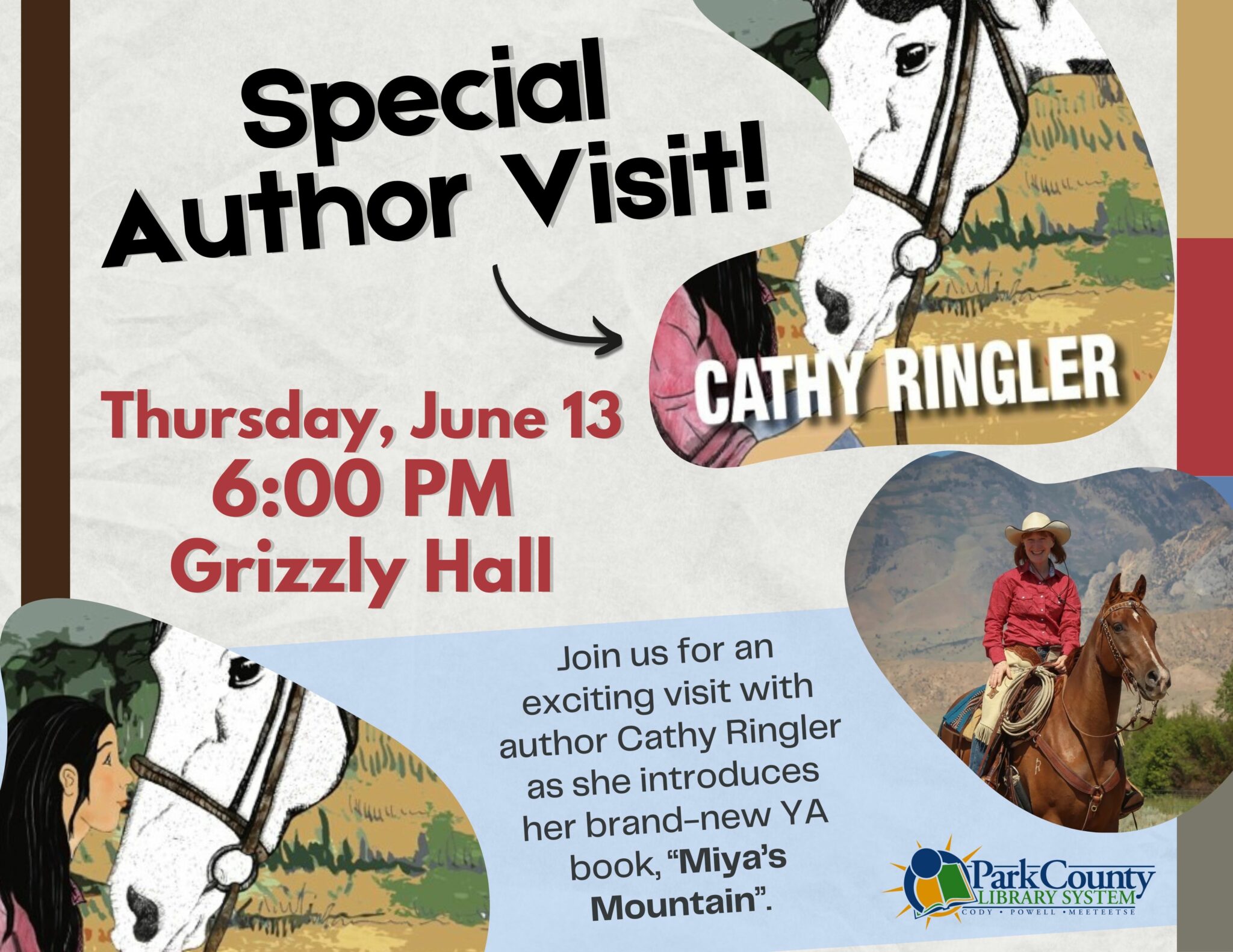 Join us in Grizzly Hall for an exciting visit with author Cathy Ringler as she introduces her new YA book, Miya’s Mountain.