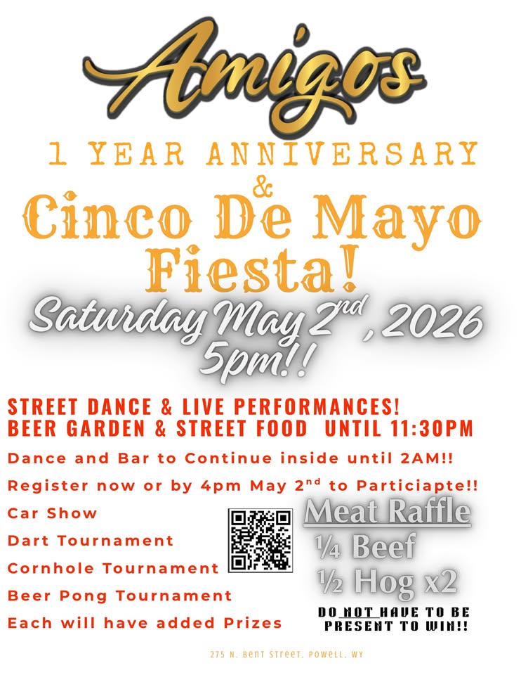 To show our thanks we are throwing a 1 year/Cinco De Mayo Amigos Fiesta for everyone to come out and enjoy the day!