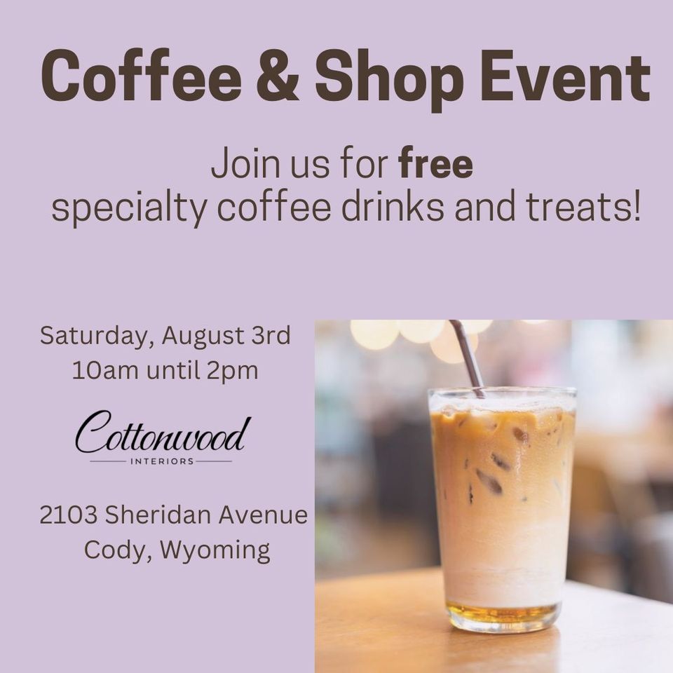 Join us for the August Coffee & Shop Event! We will be serving up free specialty coffee drinks, Italian sodas, and treats while you shop our storefront!