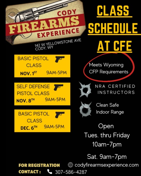 Don’t forget you can check out our schedule of events online at codyfirearmsexperience.com