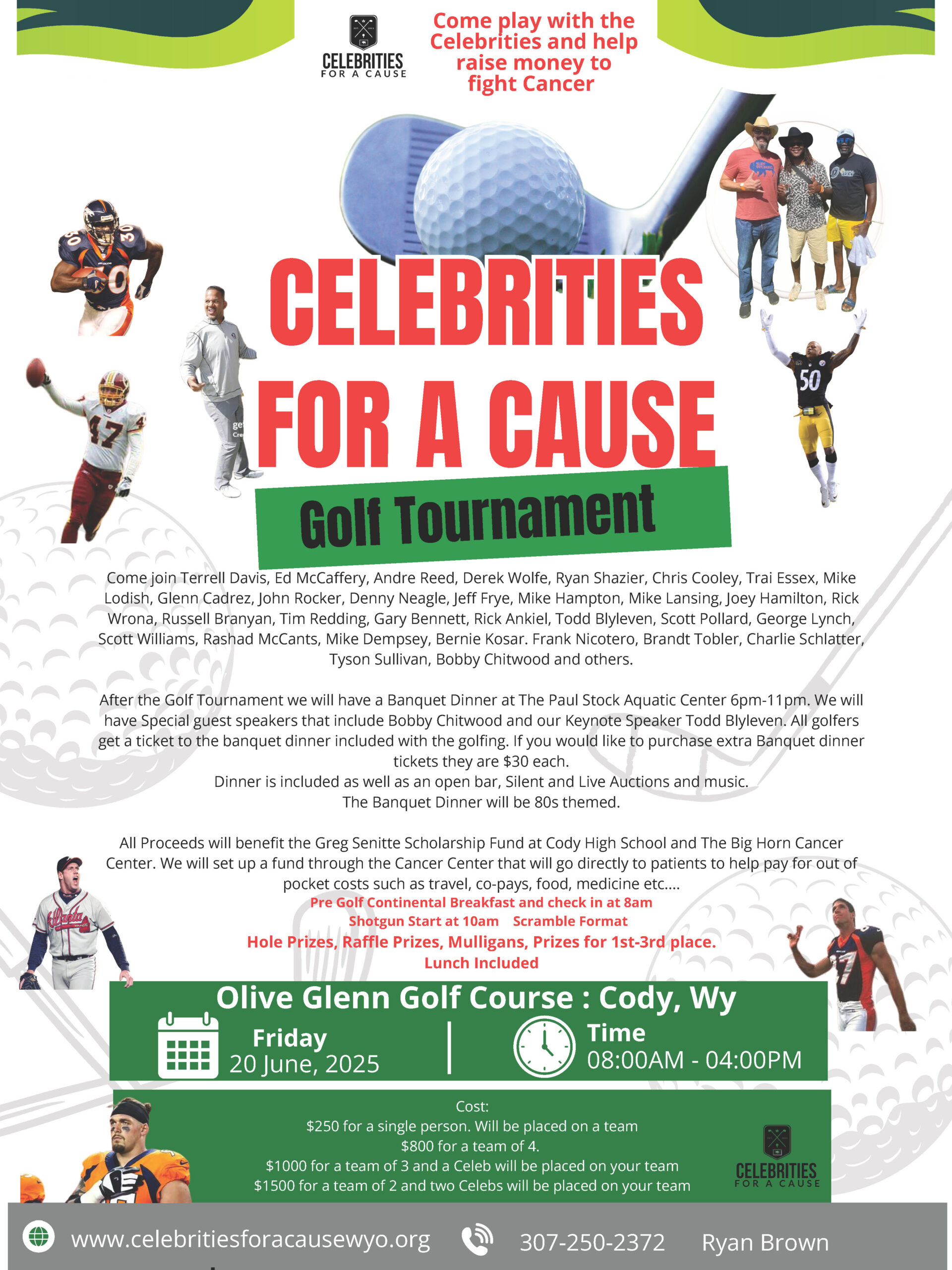 Home Celebrities for a Cause Golf Tournament – Sold Out Organizer Celebrities For a Cause Email [email protected] Website https://www.celebritiesforacausewyo.org/ Location Olive Glenn Golf Club Olive Glenn Golf & Country Club | 802 Meadow Lane Website https://www.oliveglenngolfclub.com Category Fundraiser/Giving BackSports Date Jun 20 2025 Expired! Time 8:00 am - 4:00 pm Celebrities for a Cause Golf Tournament – Sold Out Join in on the fun with a Golf Tournament filled with celebrities. Cody Journal advertisers make this calendar possible. + Add to Google Calendar + iCal / Outlook export The event is finished.