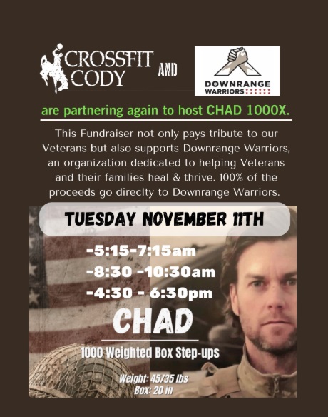 Let’s come together as a community, push through a meaningful workout, and support our veterans. Follow @crossfitcody1 and @downrange_warriors to stay up to date on all the info!