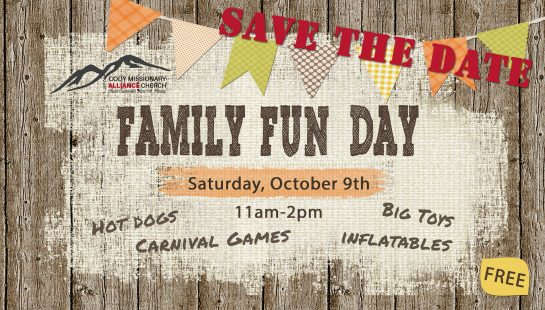 Home CMA Church: Family Fun Day Organizer Cody Alliance Church Phone 307-587-3418 Email [email protected] Website https://codycma.org/ Location CMA Church CMA Church | 147 Cooper Lane E. Website http://codycma.org/ Category Family Fun More Info Information Date Oct 09 2021 Expired! Time 11:00 am - 2:00 pm CMA Church: Family Fun Day Everyone is invited to share in the fun!! Food – Face Painting – Inflatables – Carnival Games! Cody Calendar advertisers make this calendar possible. + Add to Google Calendar + iCal / Outlook export The event is finished.