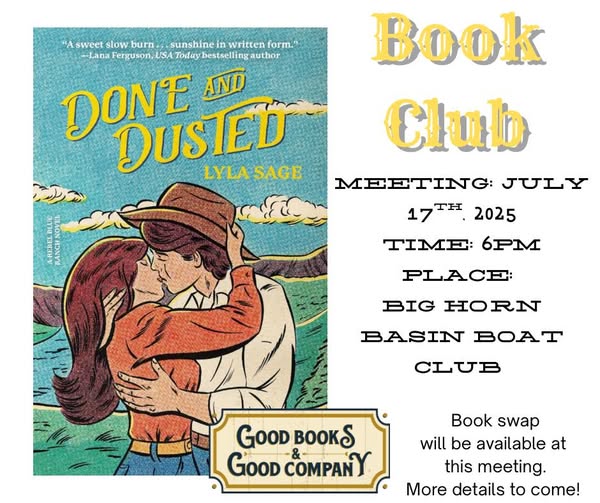 Home Cody Books and Brews Organizer Books & Brews Book Club Phone 307-250-0067 Website https://www.facebook.com/profile.php?id=61557290858013 Location Big Horn Basin Boat Club Big Horn Basin Boat Club | 15 Lakeshore Circle Dr., Cody, Wyoming Website https://www.facebook.com/bhbboatclub Category Club or Group Date Jul 17 2025 Expired! Time 6:00 pm Cody Books and Brews Meeting will take place at Big Horn Basin Boat Club Cody Journal advertisers make this calendar possible. + Add to Google Calendar + iCal / Outlook export The event is finished.