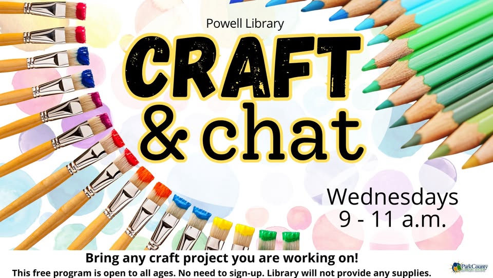 Let’s get crafty at the Powell Library’s Craft & Chat happening on Wednesdays from 9 to 11 a.m. in the Homesteader Hall Meeting Room!
