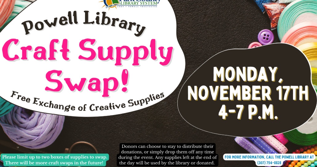 If so, bring them to the Powell Library’s Craft Supply Swap on Monday, November 17th between 4 & 7 p.m.!!