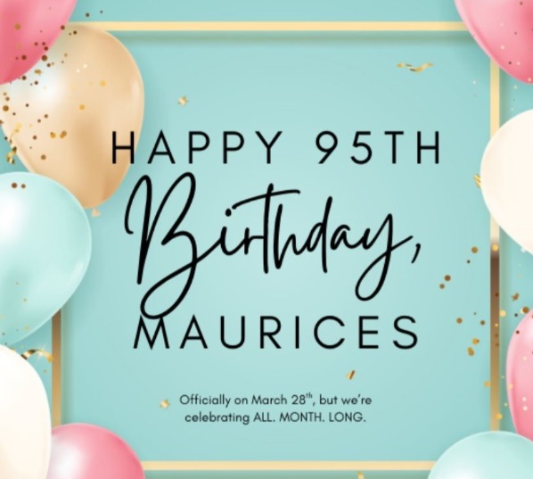Join us March 26th 4-7pm with new spring arrivals and sales to celebrate Maurices turning 95!