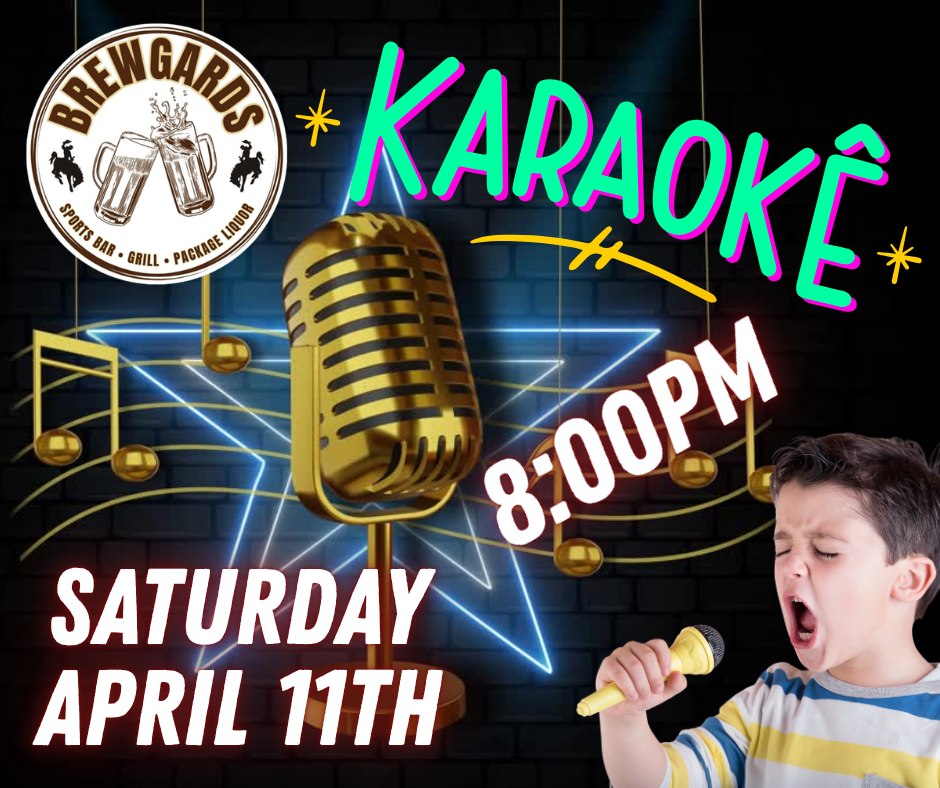 Home Karaoke Night Organizer Brewgards Phone (307) 587-4431 Email [email protected] Website https://brewgardscodywyo.com%20 Location Brewgards 2357 Mountain View Rd, Cody, WY Website https://brewgardscodywyo.com%20 Phone 307-587-4431 Category Night Life, Live Music & Concerts Date Apr 11 2026 Time 8:00 pm Karaoke Night ANOTHER EPIC NIGHT OF INCREDIBLE TALENT AND FUN. JOIN US FOR KARAOKE NIGHT AT BREWGARDS Cody Journal advertisers make this calendar possible. + Add to Google Calendar + iCal / Outlook export 00 days 00 hours 00 minutes 00 seconds