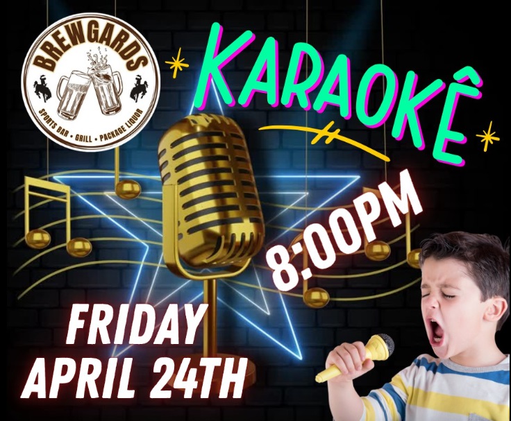 Home Karaoke Night Organizer Brewgards Phone (307) 587-4431 Email [email protected] Website https://brewgardscodywyo.com%20 Location Brewgards 2357 Mountain View Rd, Cody, WY Website https://brewgardscodywyo.com%20 Phone 307-587-4431 Category Night Life, Live Music & Concerts Date Apr 24 2026 Time 8:00 pm Karaoke Night ANOTHER EPIC NIGHT OF INCREDIBLE TALENT AND FUN. JOIN US FOR KARAOKE NIGHT AT BREWGARDS Cody Journal advertisers make this calendar possible. + Add to Google Calendar + iCal / Outlook export 00 days 00 hours 00 minutes 00 seconds