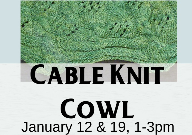 Cable and lace class! Learn simple cables and easy lace with this beautiful cowl designed by Linda. Lessons will occur during two class sessions.
