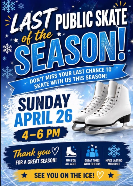 Home Last Public Skate Organizer Riley Ice Arena & Community Events Center Phone (307) 587-1681 Email [email protected] Website https://rileyarena.com Location Riley Arena Riley Arena | 1400 Heart Mountain Street Website http://www.rileyarena.com/ Category Family FunSports Date Apr 26 2026 Time 4:00 pm - 6:00 pm Last Public Skate Join us for the last public skate of the season! Cody Journal advertisers make this calendar possible. + Add to Google Calendar + iCal / Outlook export 00 days 00 hours 00 minutes 00 seconds