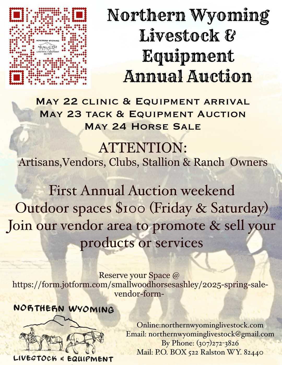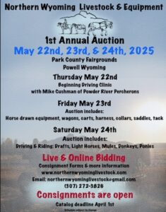 Home Northern Wyoming Livestock & Equiptment Annual Auction Location Park County Fairgrounds Park County Fairgrounds | 655 E 5th St, Powell, WY Category Family FunShoppingWestern Experiences Date May 24 2025 Expired! Time 9:00 am Northern Wyoming Livestock & Equiptment Annual Auction There is online bidding and in person events. Cody Journal advertisers make this calendar possible. + Add to Google Calendar + iCal / Outlook export The event is finished.