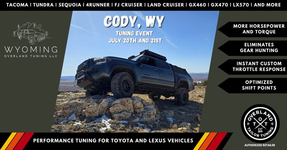 Wyoming Overland Tuning will be in Cody, WY on July 20th and 21st (Saturday and Sunday) to offer the smoothest, most refined tune on the market. Most vehicles cost $450 to tune but price may vary depending on your vehicle.