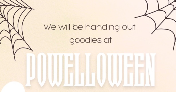 Home Powelloween Location Downtown Powell Category Family FunHoliday Event Date Oct 31 2025 Expired! Time 4:00 pm - 5:00 pm Powelloween Join us in Downtown Powell for Trick-or-Treating! Cody Journal advertisers make this calendar possible. + Add to Google Calendar + iCal / Outlook export The event is finished.