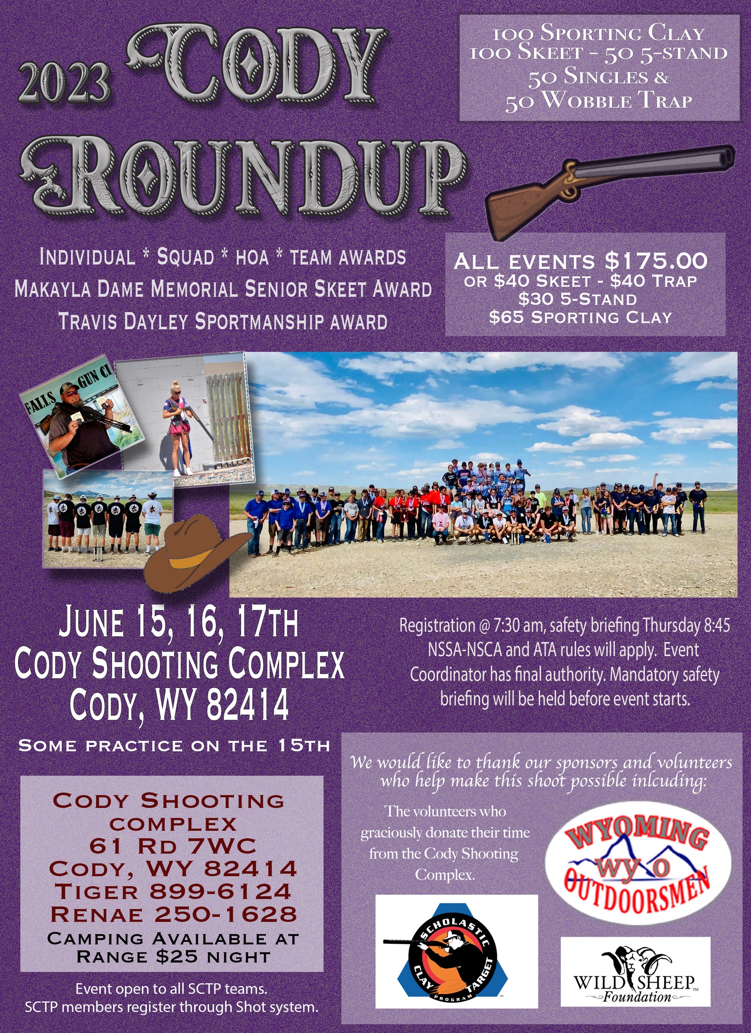 Home Regional Round Up: Clay Shooting Targets Location Cody Shooting Complex 61 Road 7WC, Cody, WY Website https://www.codyshootingcomplex.org/ Category Club or Group Date Jun 17 2023 Expired! Time All Day Regional Round Up: Clay Shooting Targets Cody Calendar advertisers make this calendar possible. + Add to Google Calendar + iCal / Outlook export The event is finished.