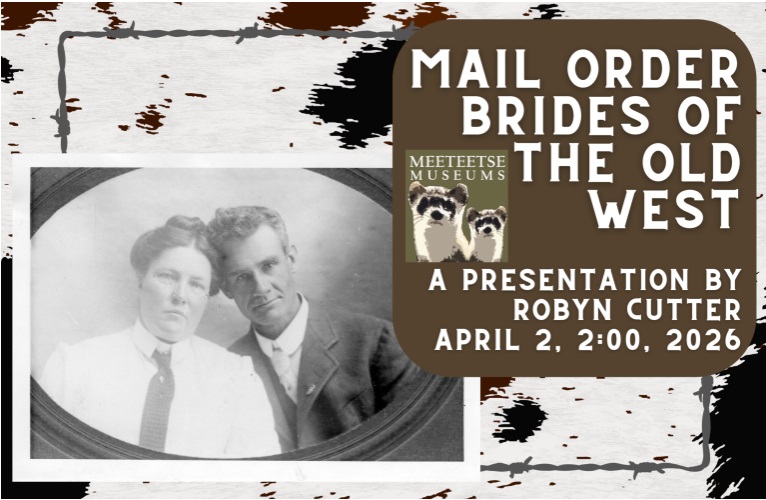 Join us at the Meeteetse Museums on April 2, 2026, at 2:00 for a presentation by Park County Archivist Robyn Cutter. This talk explores the history of mail-order brides in the American West. Robyn previously gave this talk in Cody in February 2026.
