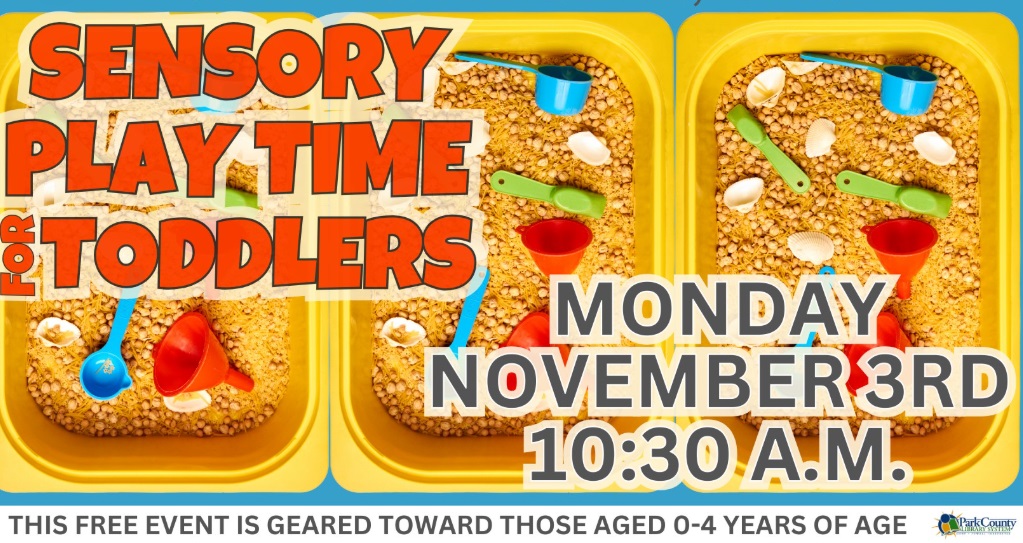 Come join us for a Sensory Playtime for Toddlers at the Park County Public Library, Powell on Monday, November 3rd at 10:30 a.m.!
