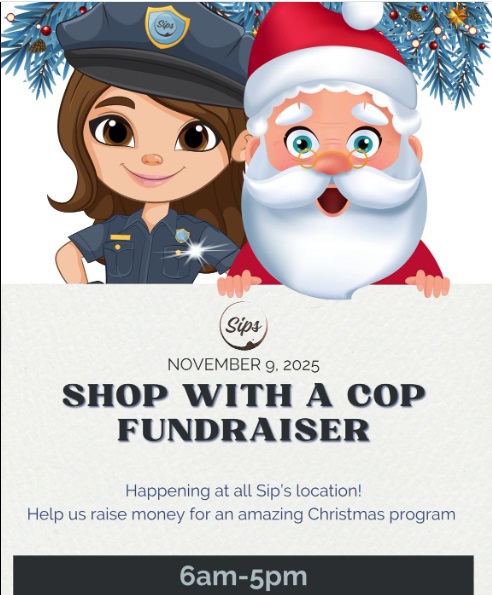 A portion of profits from every Sips location will go directly to the police department in that community to support their Christmas Drive.