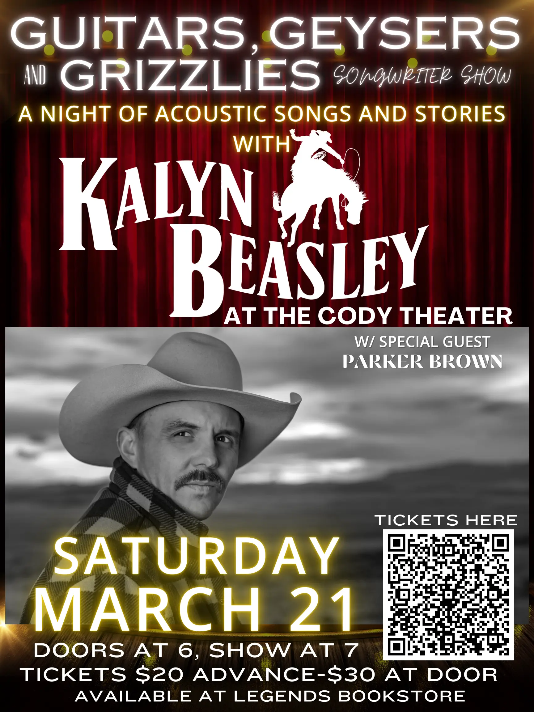 Enjoy an evening of songs and stories by Wyoming troubadour Kalyn Beasley at the historic Cody Theater. Tickets $20 available at Legends Bookstore or eventbrite.com