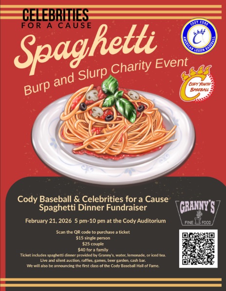 Celebrities for a Cause is pleased to announce its partnership with Granny’s Restaurant, Cody Little League, and Cody Legion Baseball in hosting a fundraising event on Saturday, February 21st, at the Cody Auditorium.The family event will feature a spaghetti dinner, beer garden, raffles, games, and auctions, with all proceeds going toward supporting Park County Law Enforcement, Cody Legion Baseball, and Cody Little League Baseball.We kindly request donations of live and silent auction items to support this worthy cause; please contact Ryan Brown for further information.The evening will also witness the inaugural induction of outstanding individuals into the Cody Baseball Hall of Fame.