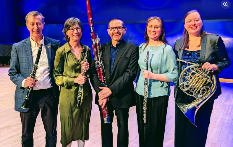 We will also hear a new American work by Nicole Chamberlain entitled “Everything is Fine.” Nicole is a flutist as well as a composer and her focus is on the coloristic possibilities of the related but diverse instruments of the woodwind quintet. You will hear sounds and combinations that you might not have previously imagined.