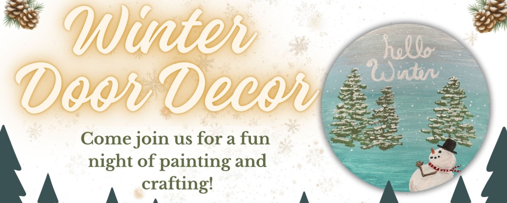 Get ready for a cozy night of creativity! Join us at the Cody Library Grizzly Hall on Tuesday, December 2, from 5:30–6:30 PM for a fun painting and crafting event for all ages. We’ll be making Winter Door Decor to add a festive touch to your home.