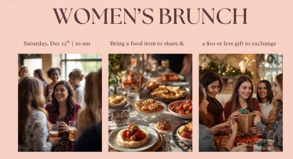 Join us for a festive Women’s Brunch on December 13th at 10 AM at Celeste’s House. Bring a favorite dish to share and a small gift (valued at $10 or less) for a fun and cheerful gift exchange. Come enjoy good food, warm company, and a joyful start to the season!