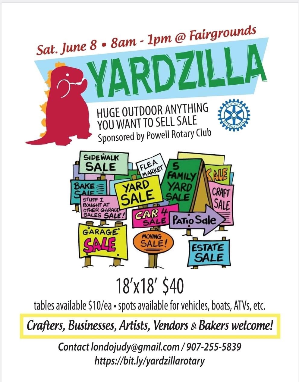 Home Yardzilla Organizer Powell Rotary Club Phone 907-255-5839 Location Park County Fairgrounds Park County Fairgrounds | 655 E 5th St, Powell, WY Category Fundraiser/Giving BackShopping More Info Register Date Jun 08 2024 Expired! Time 8:00 am - 1:00 pm Yardzilla Cody Calendar advertisers make this calendar possible. + Add to Google Calendar + iCal / Outlook export The event is finished.