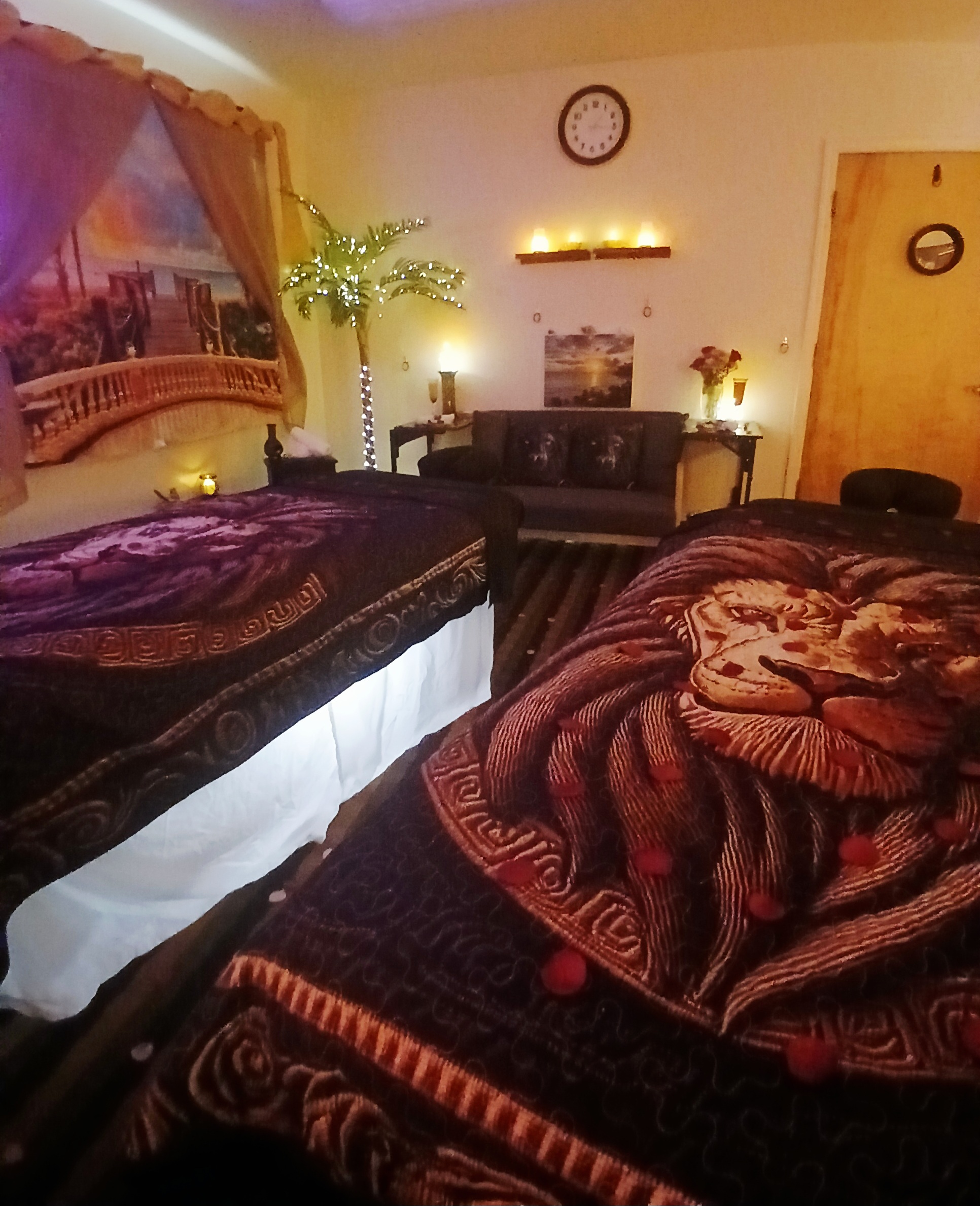 “This was an absolute treat. I was skeptical at first with price, but everything they did, said, and offered was well worth it. Although I had to rush a little. I will be coming back again. The atmosphere was relaxed and their space was homey. They took the time to build a connection with us. Learned about what we do, and made it feel like we were just having a good old chat. My masseuse Darla was very receptive of any of my comments and my unfortunate occasional grunts. She made sure that she worked my target areas but also respected that some of those areas were old injuries. I can’t say enough about how amazing this experience was. A hidden gem in our town.”