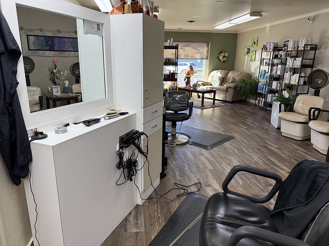 Monica Paul owns this 2000+ square foot salon, which was her grandma’s home for years and makes a spacious environment for pampering. She is open to booth rental space if that fits your business model. However, she has used a commission-based system for years, where the salon provides all the products and equipment needed for a small commission fee. Choose what fits your goals and lifestyle.